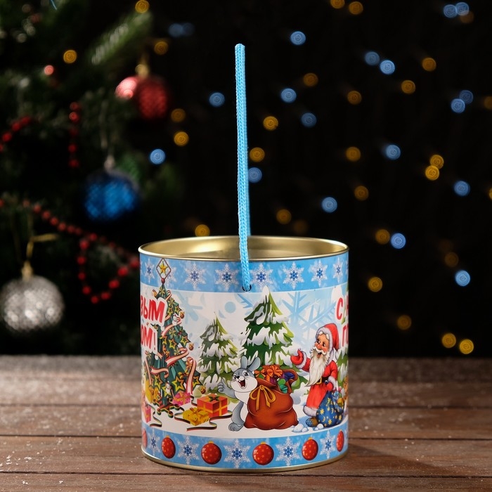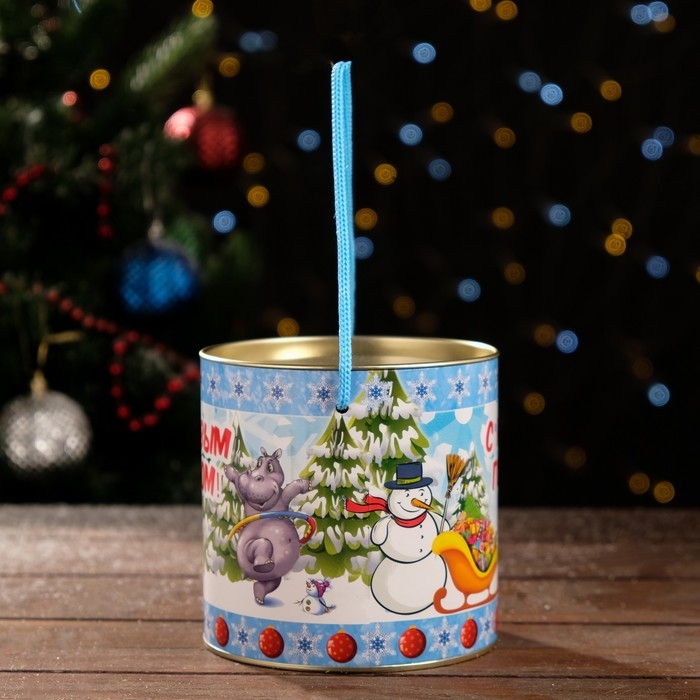 Новый год. Подарочная коробка, тубус «Весёлые зверята» 120 х 120 мм (100 мм внутр. высота).
