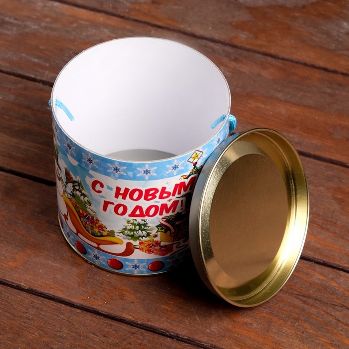 Подарочная туба выполнена из плотного картона и металла. Изделие оформлено красочным изображением. Туба оснащена крышкой. В комплект входит подвесное декоративное украшение.