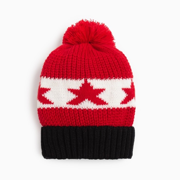 Шапка MINAKU с помпоном, р-р 50-52, цв. красный