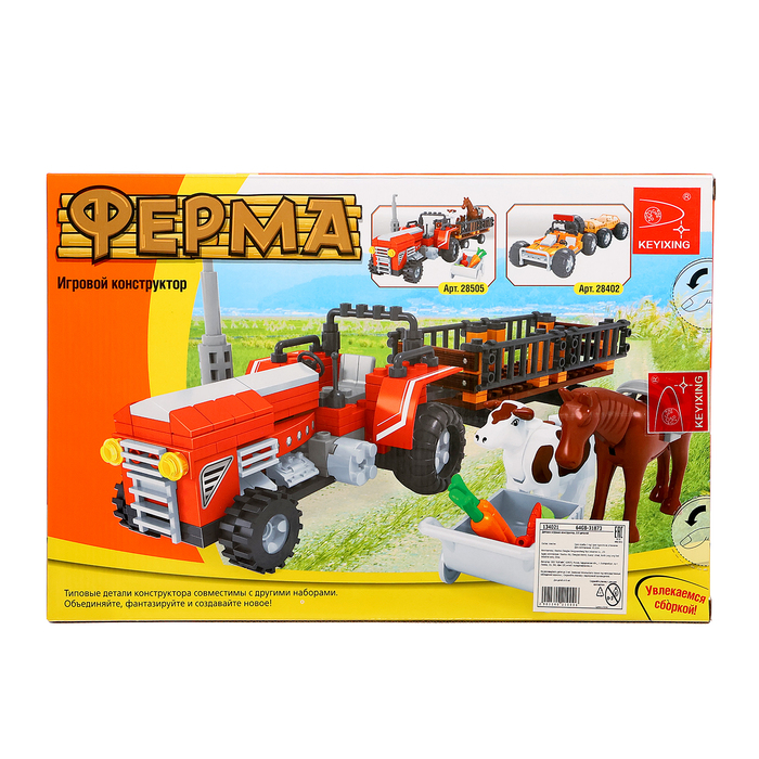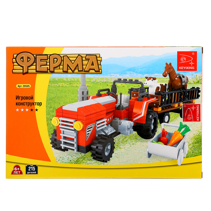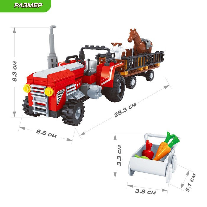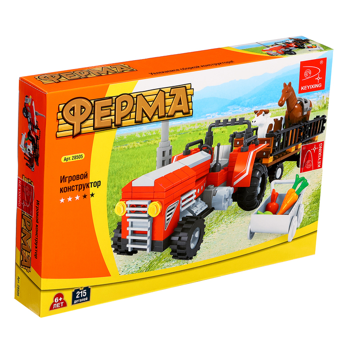 Конструктор Ферма «Трактор с животными», 215 деталей