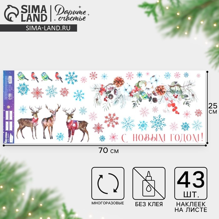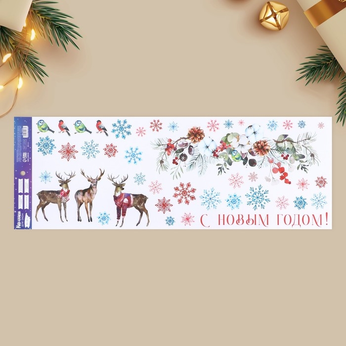 Наклейки новогодние на окна, виниловые «Новогодняя ботаника», многоразовые, 70 х 25 см, Новый год