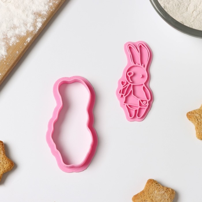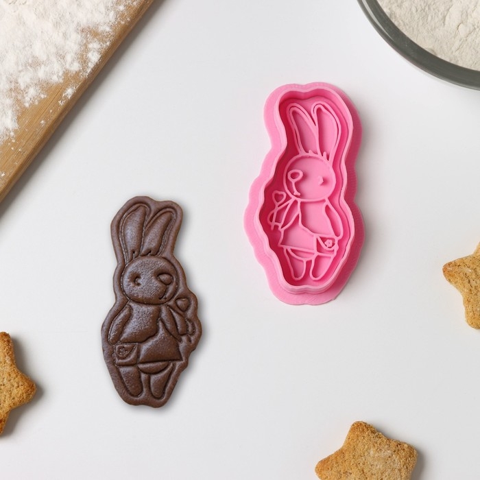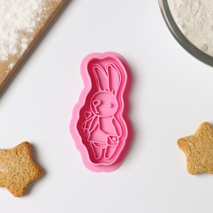 Форма для печенья «Зайка с леденцом», вырубка, штамп, цвет розовый