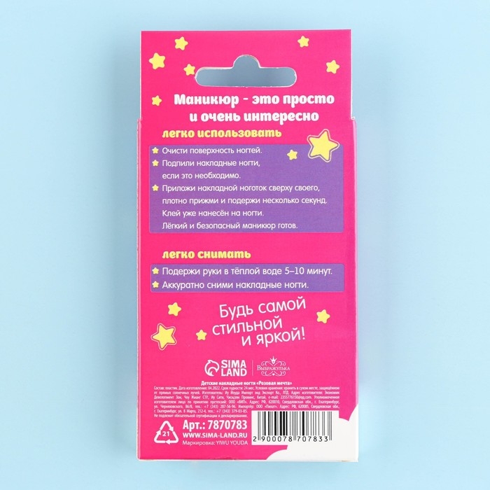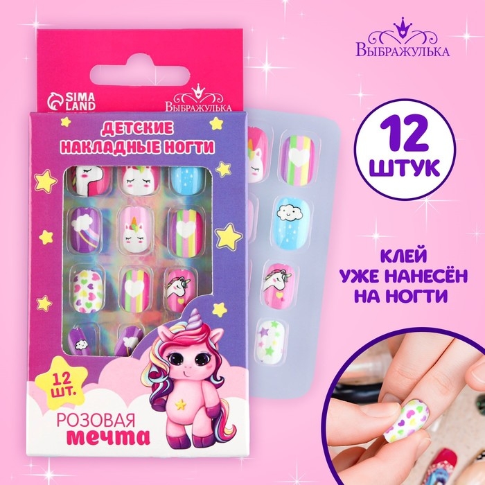 Детские накладные ногти «Розовая мечта», 12 шт