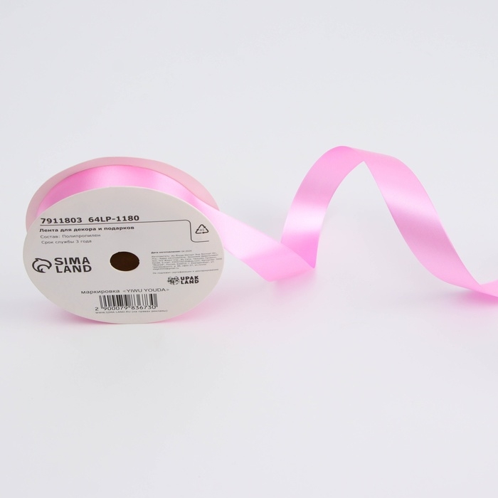 Новый год. Лента для декора и подарков, светло-розовая, 2 см х 45 м