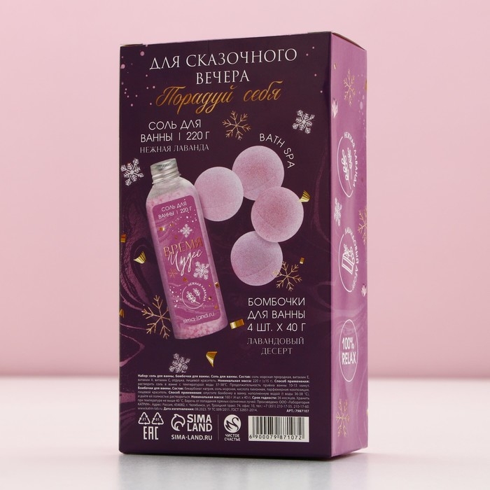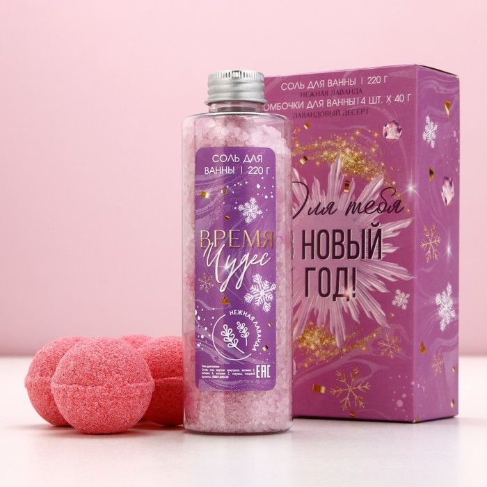 Подарочный набор косметики «Для тебя в Новый Год!», соль для ванны 220 г и бомбочки для ванны 4 х 40 г, ЧИСТОЕ СЧАСТЬЕ
