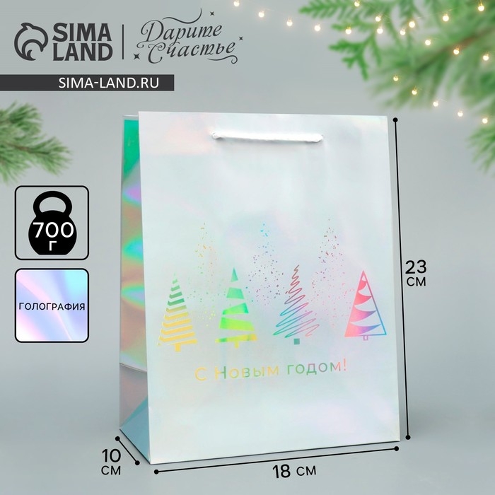 Пакет голографический «Сказочный лес», 18 х 23 х 10 см, Новый год