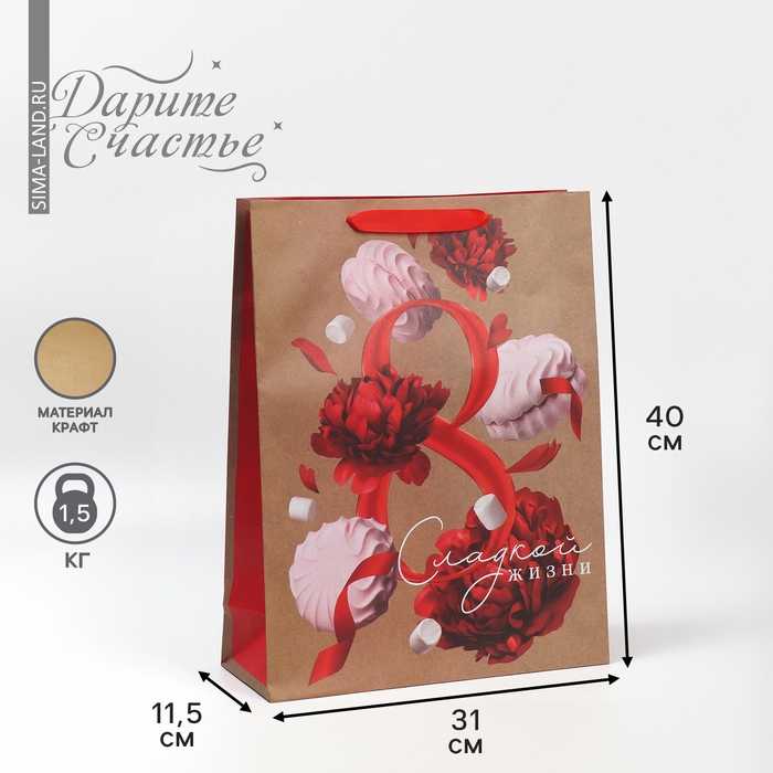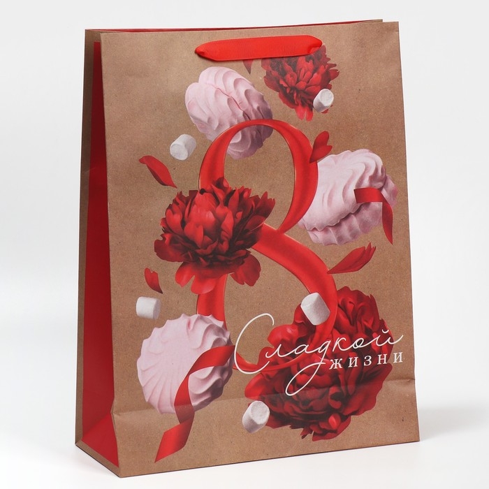 Пакет подарочный крафтовый вертикальный, упаковка, «Яркая весна», L 40 х 31 х 11.5 см