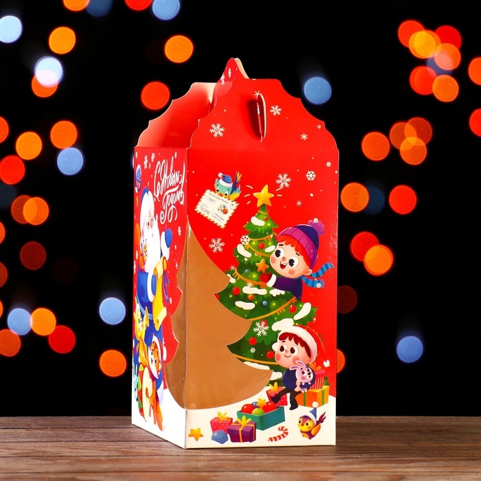 Новый год. Подарочная коробка с окном елочкой "Письма", 25 х 13 х 19 см.