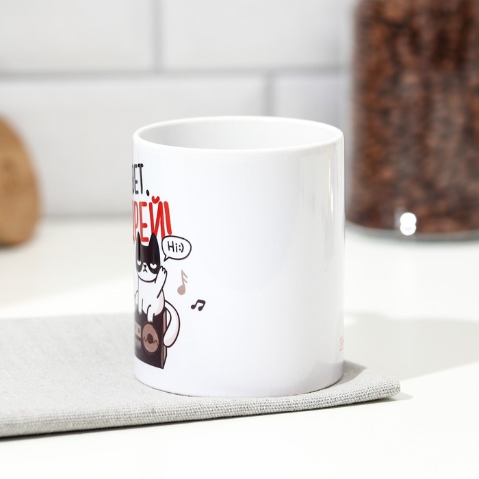 Кружка сублимация "Андрей" кот на магнитофоне, 320 мл, с нанесением