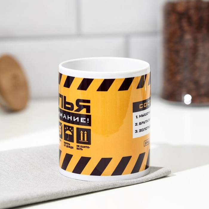 Кружка изготовлена из керамики. Рисунок нанесён методом сублимации, при котором краска проникает в верхний слой изделия, поэтому изображение получается стойким.