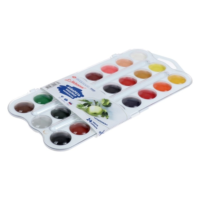Акварель художественная в кюветах, 24 цвета х 2.5 мл, ЗХК "Санкт-Петербург", пластиковая палитра, 1942017
