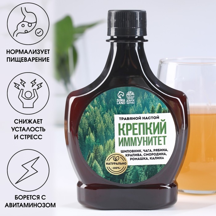 Бальзам «Крепкий иммунитет»: шиповник, чага, рябина, крапива, смородина, ромашка, калина, в пластиковой бутылке, 250 мл.