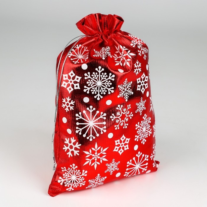 Мешок для подарков «Дед Мороз и снежинки», на завязках, 29 × 22 см