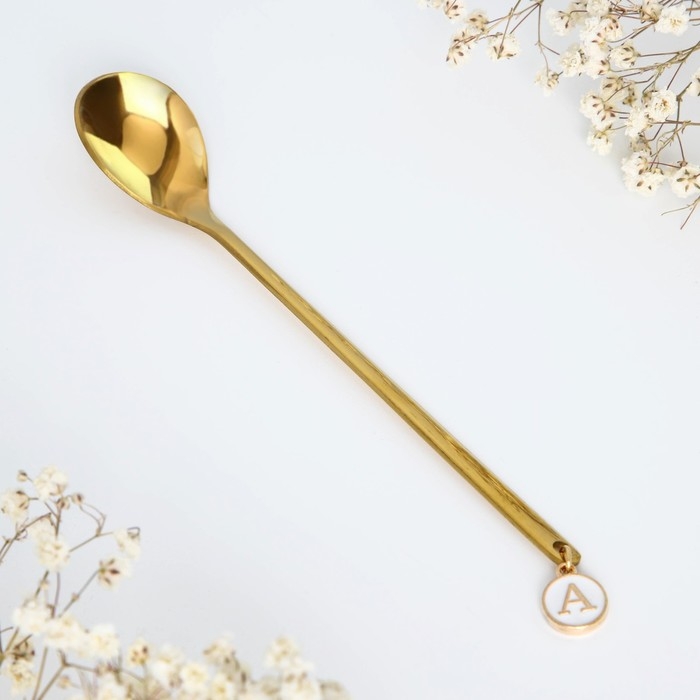 Ложка барная с мадлером из нержавеющей стали, длина 32 см, цвет золотой
