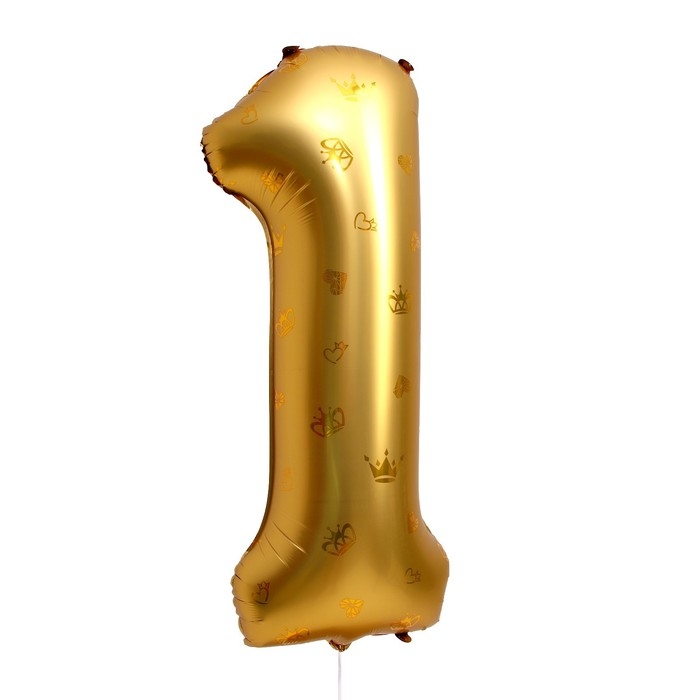 Шар фольгированный 34" «Цифра 1 с коронами», цвет золото