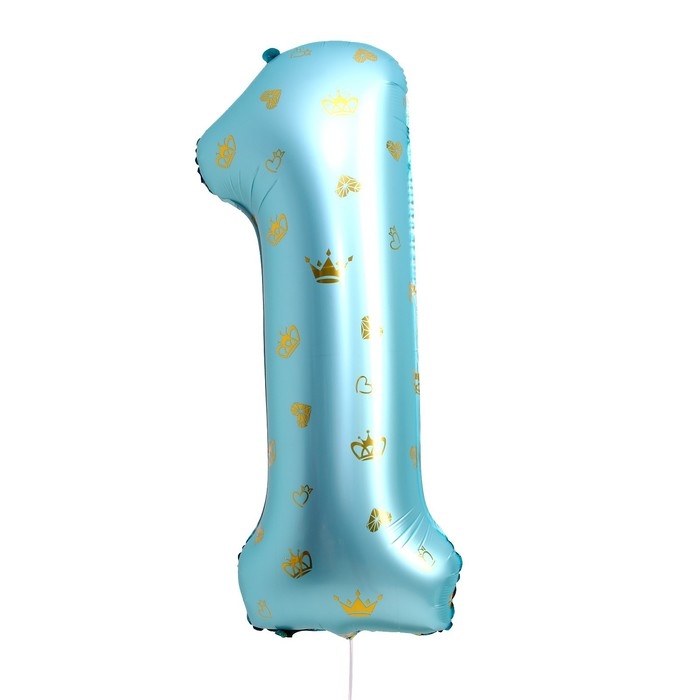 Шар фольгированный 34" «Цифра 1 с коронами», цвет голубой