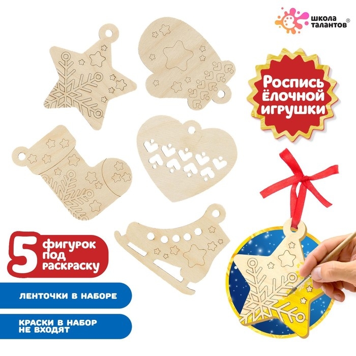 Набор для творчества «Роспись по дереву» 5 шт., с ленточкой