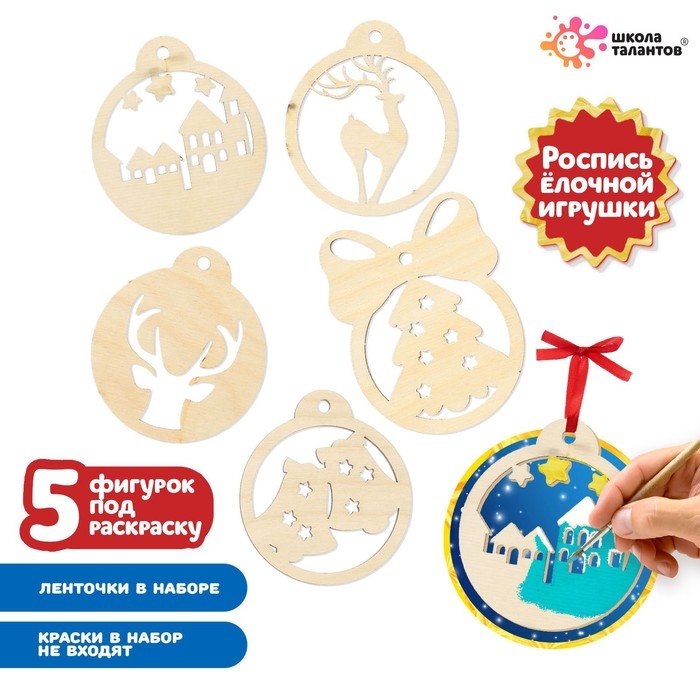 С набором для росписи по дереву у вас получится смастерить 5 новогодних подвесок и украсить ими праздничную ёлочку или интерьер.