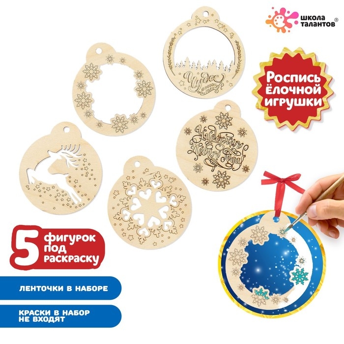С набором для росписи по дереву у вас получится смастерить 5 новогодних подвесок и украсить ими праздничную ёлочку или интерьер.