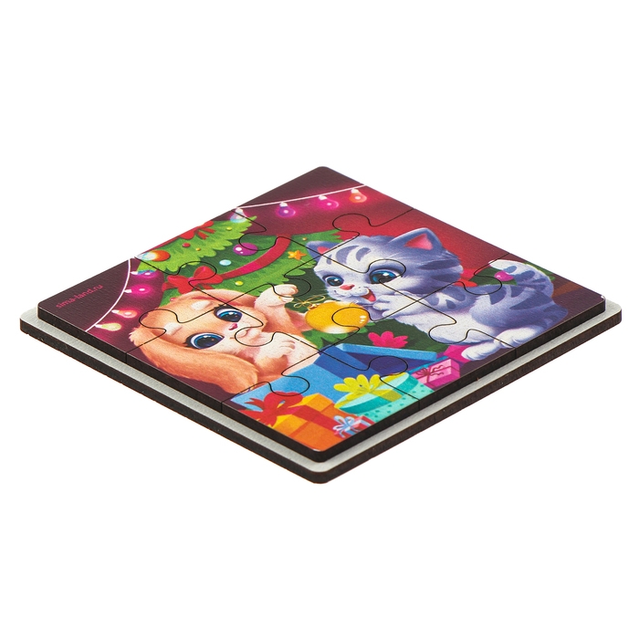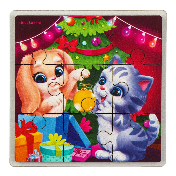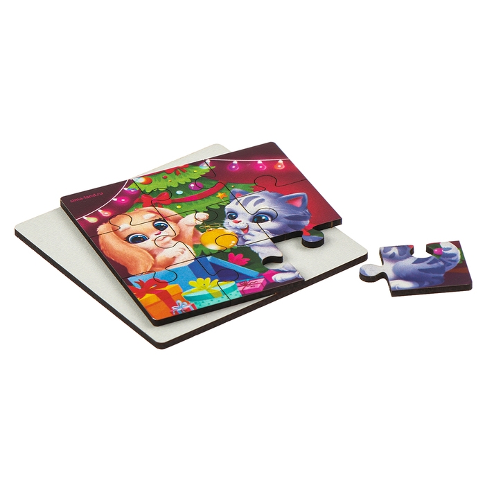Дервянные пазлы на новый год «Зверята украшают ёлочку»