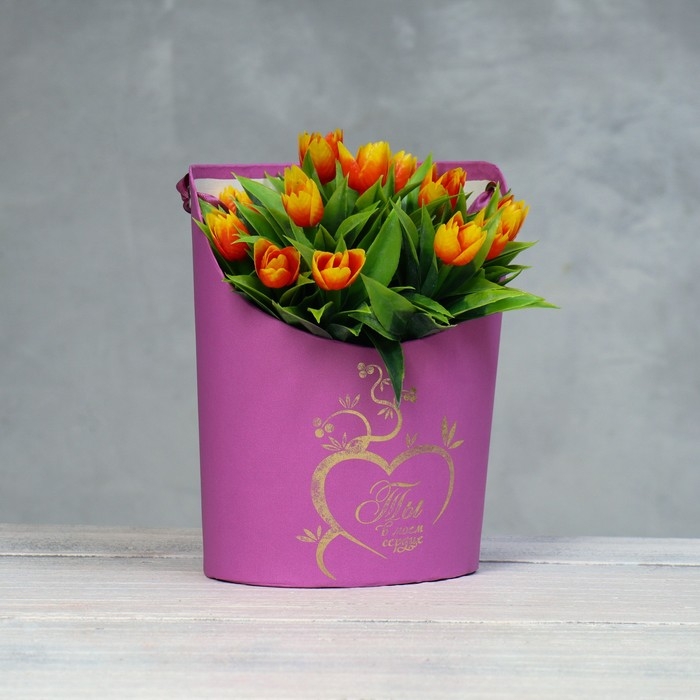 Переноска для цветов, ваза Овал с тиснением "Ты в моём сердце", фуксия 12,5 х 13,5 х 18 см