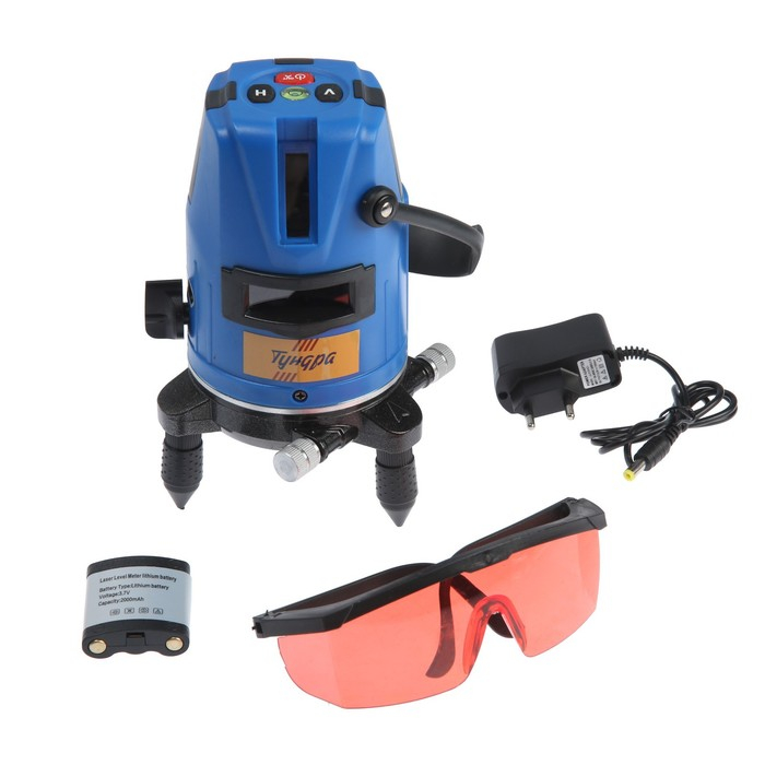 Уровень лазерный ТУНДРА, самовыравнивающийся, подставка, 2 луча, очки, зарядка, кейс