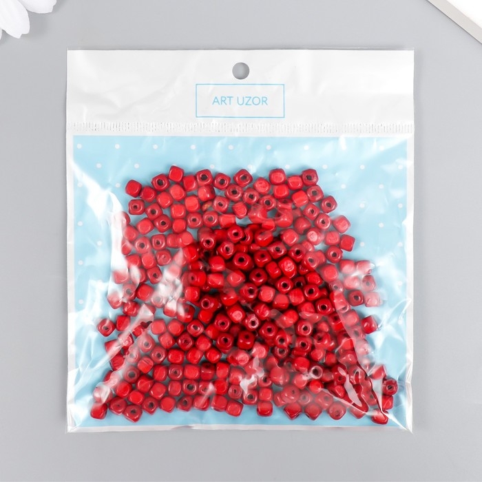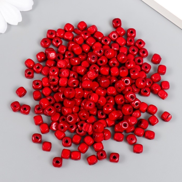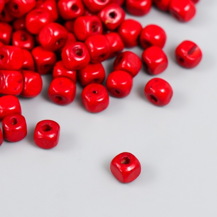 Бусины для творчества дерево "Кубик" d-0,5 см, набор 20 гр красный