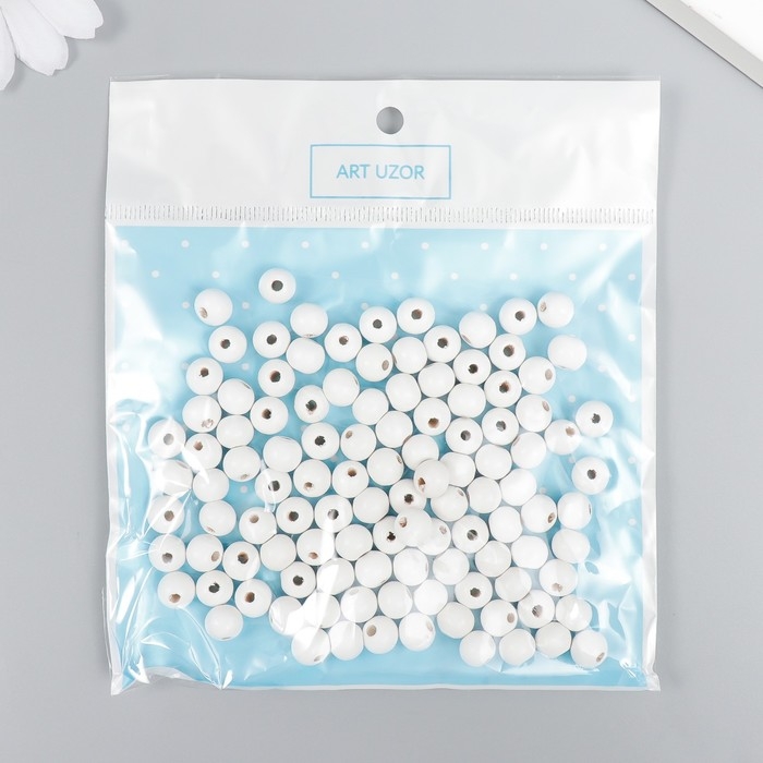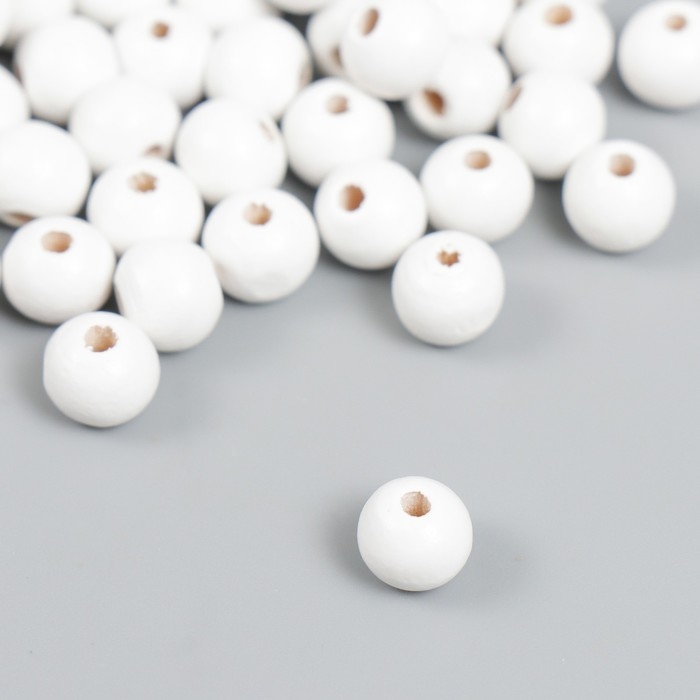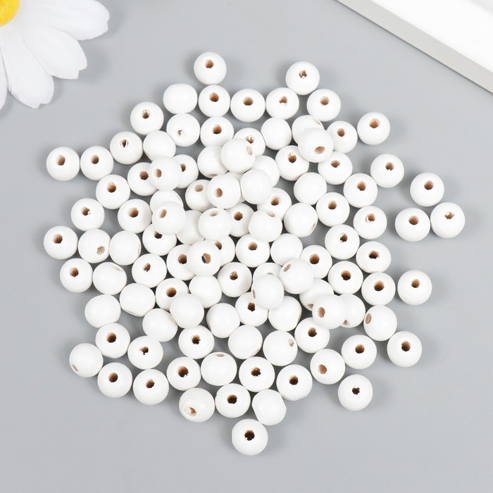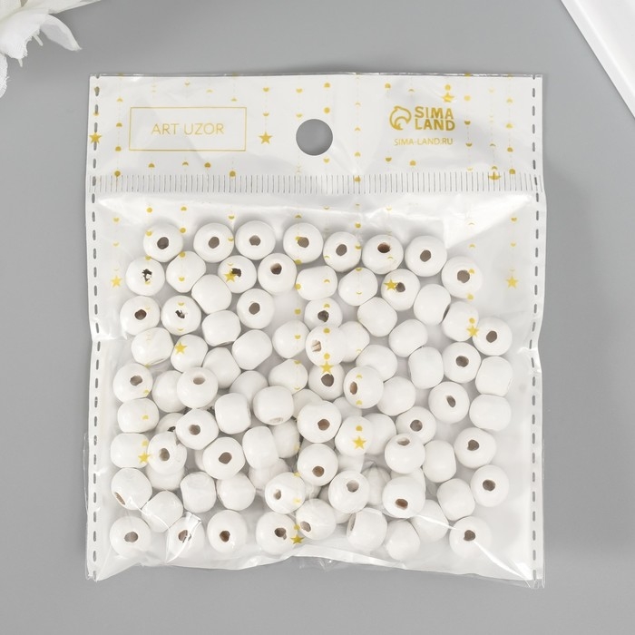 Бусины для творчества дерево "Белый" d-0,8 см, набор 20 гр