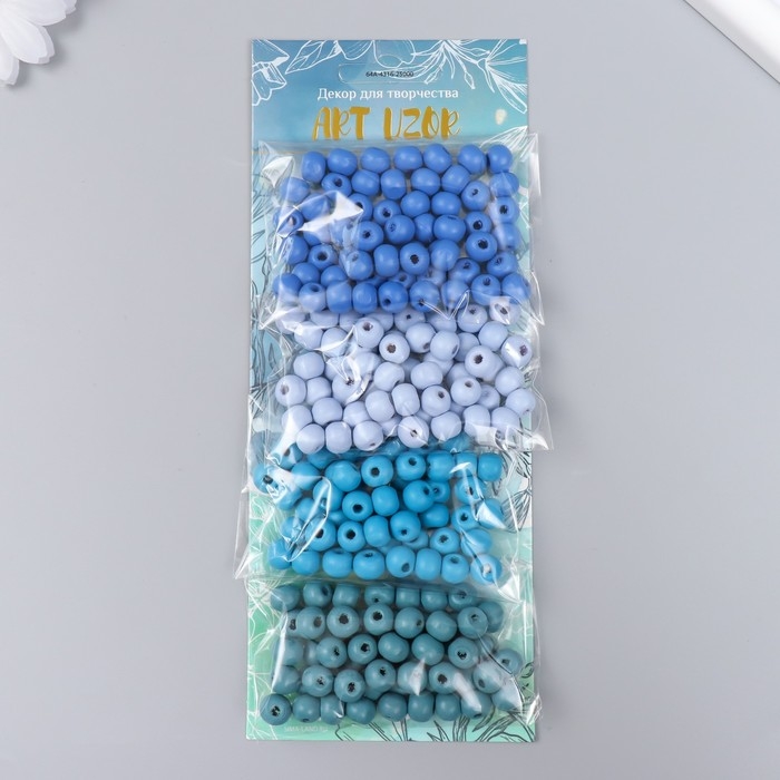 Бусины для творчества дерево "Небесная гамма" d-0,8 см, 4 цвета х 10 гр