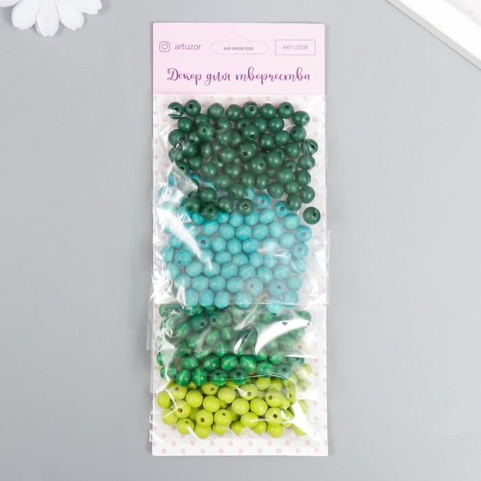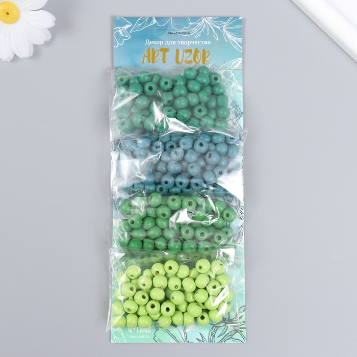 Бусины для творчества дерево "Луговая гамма" d-0,8 см, 4 цвета х 10 гр