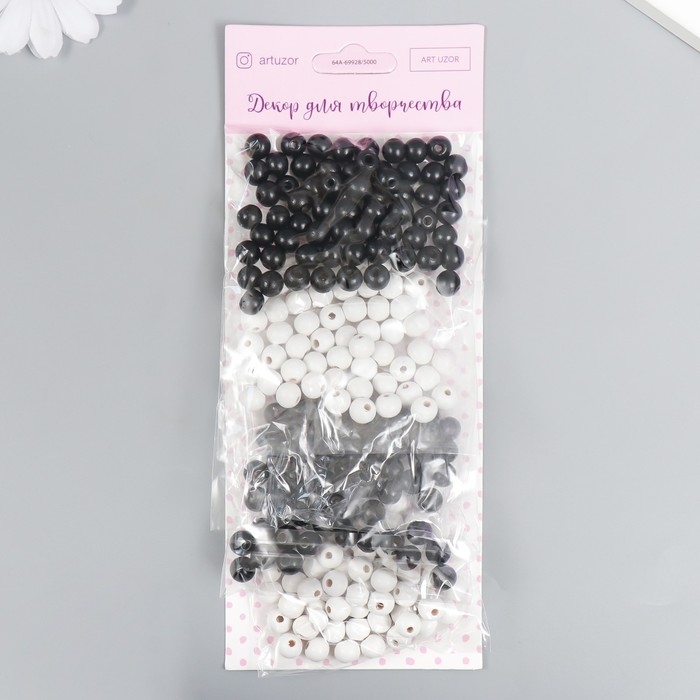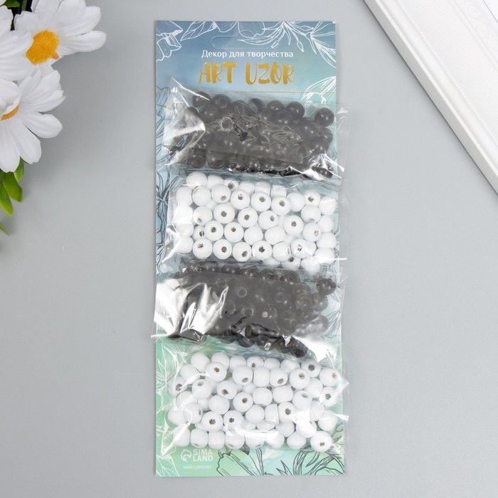 Бусины для творчества дерево "День и ночь" d-0,8 см, 2 цвета х 20 гр