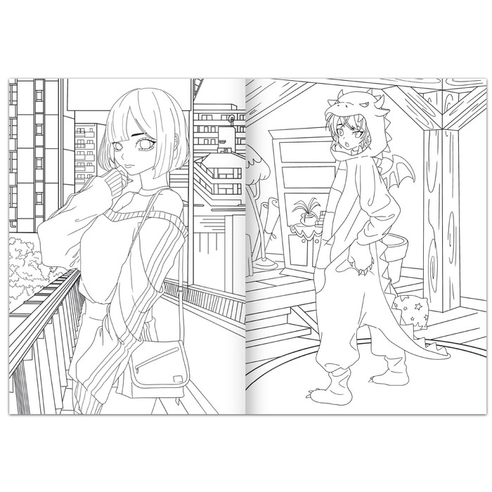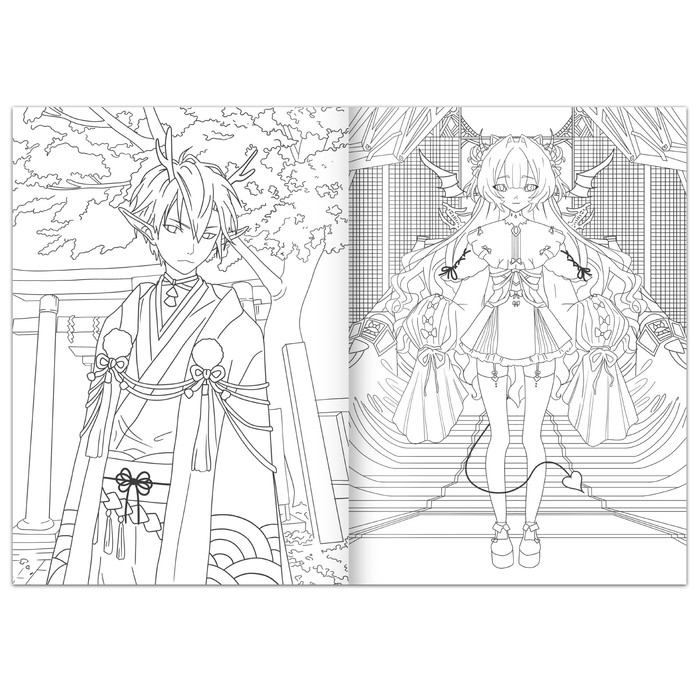 Набор раскрасок заинтересует любителей жанра японской анимации и тех, кто только знакомится с этим стилем.
