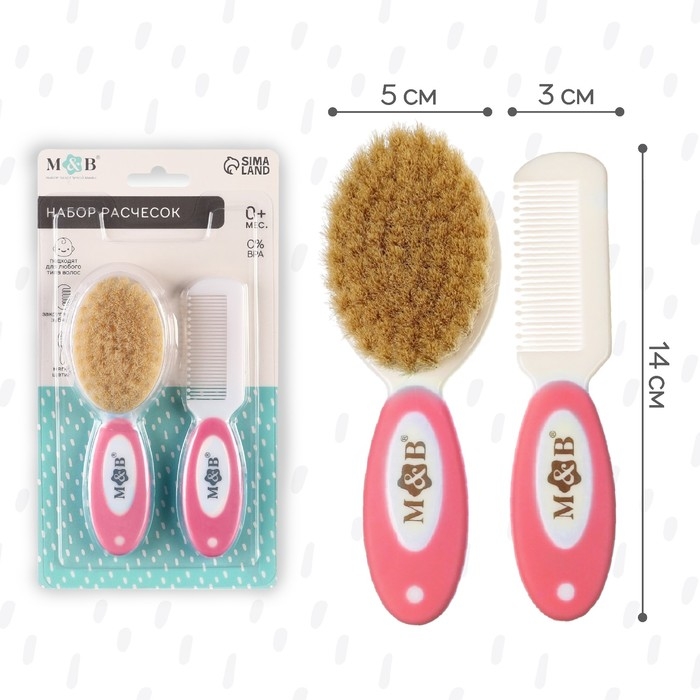 Набор детский для ухода за волосами: расческа и щетка с натуральной щетиной , цвет белый/розовый