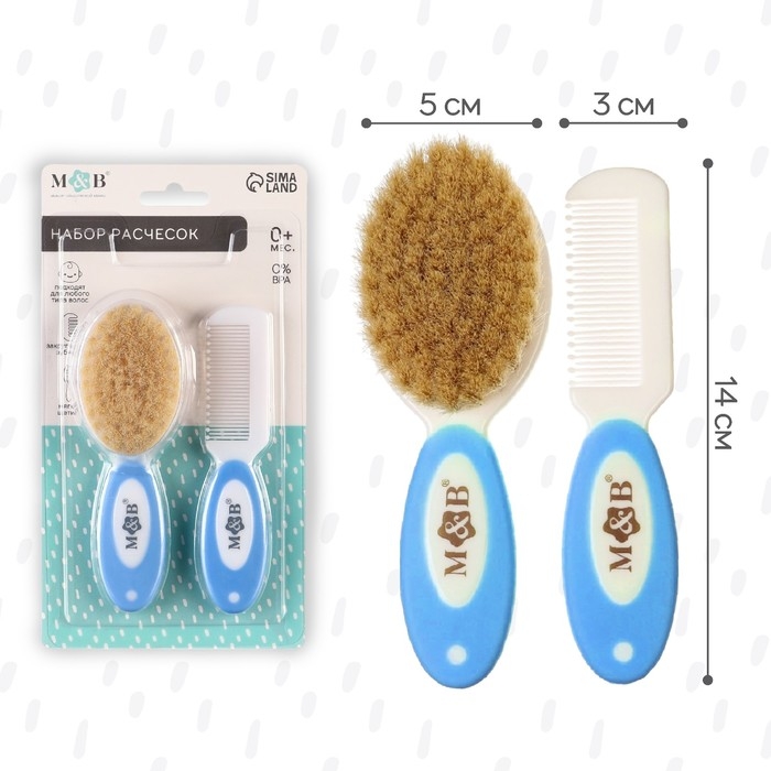 Набор расчесок с нейлоновой щетиной М&В, цвет голубой