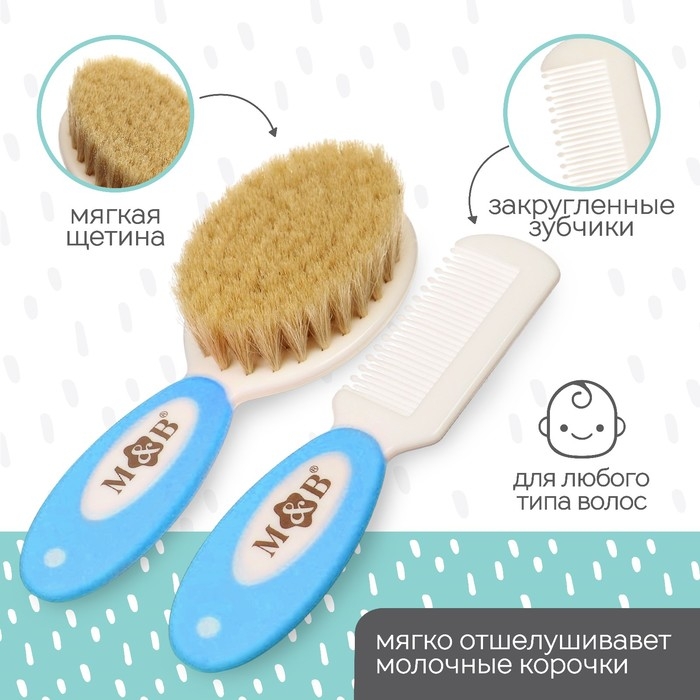 Расческа-щетка с мягкой щетиной и удобная расческа с закругленными зубчиками предназначены для малышей с первых дней жизни.