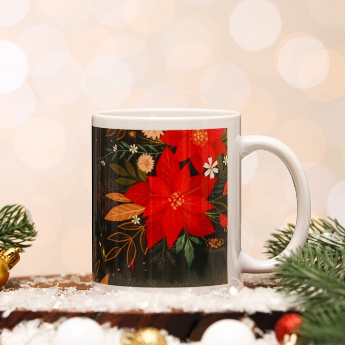 Кружка новогодняя, сублимация "С Новым Годом!" цветы, 320 мл