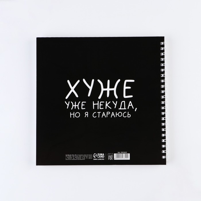 Скетчбук на гребне «Черный», 20х20см, 40 листов