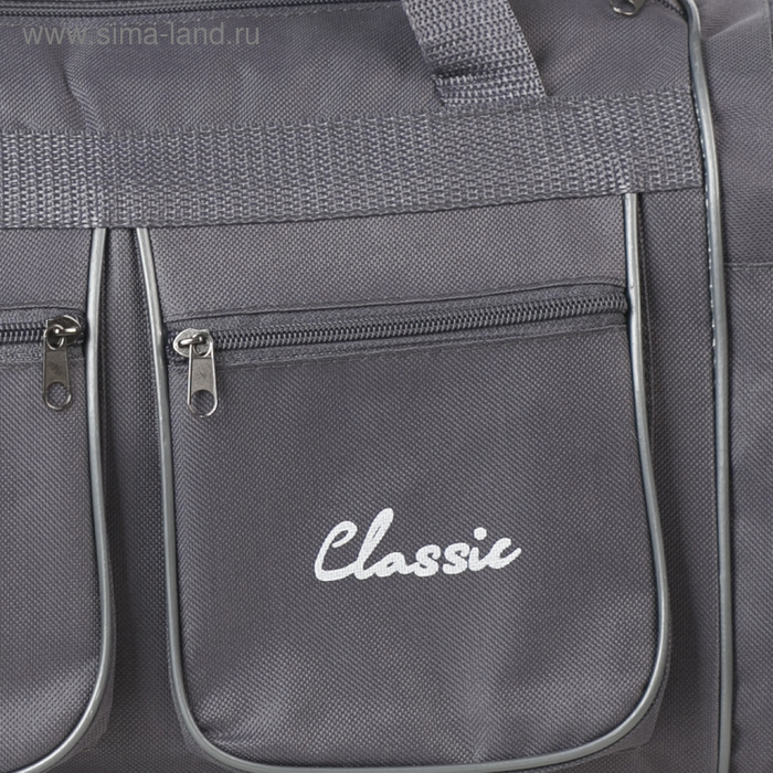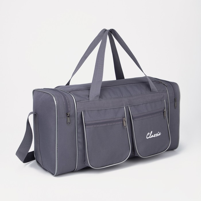 Сумка спортивная на молнии, 4 наружных кармана, длинный ремень, средний размер, цвет серый