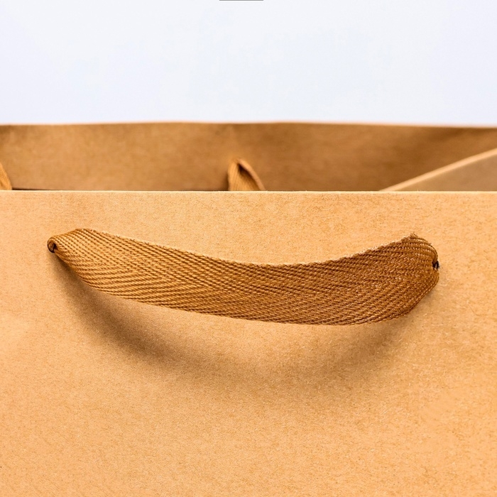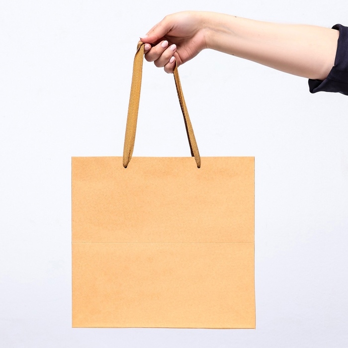 Пакет крафт без печати 32 х 20 х 37 см, плоская ручка, набор 20 шт.