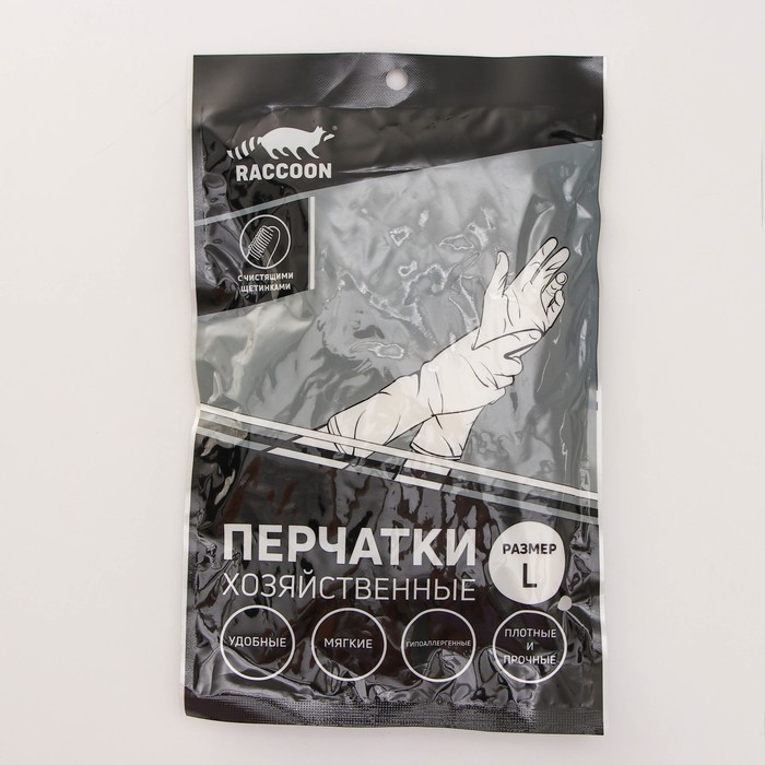Перчатки хозяйственные Raccoon с щётками, манжетой и подкладом, размер L, 47 см, цвет белый