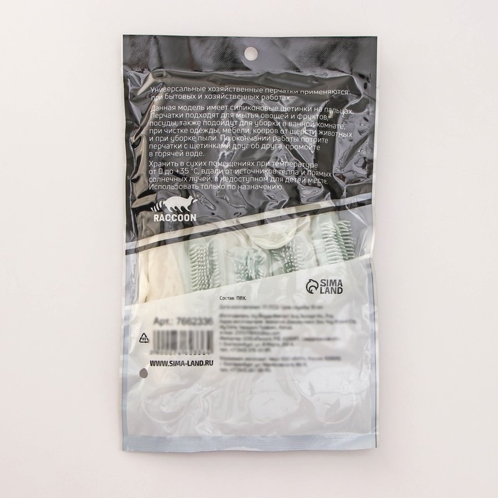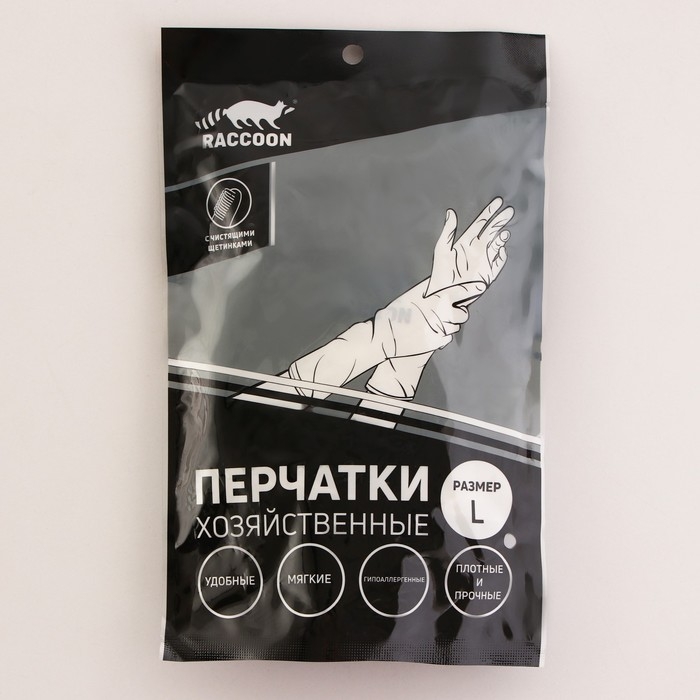 Перчатки хозяйственные Raccoon с щётками, ПВХ, 90 гр, размер L, цвет белый