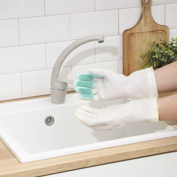 Перчатки хозяйственные Доляна, 28×14 см, силиконовые, цвет бирюзовый