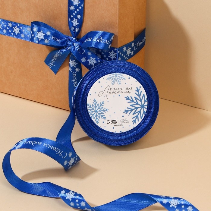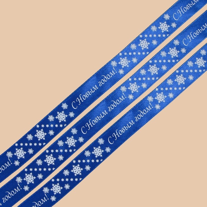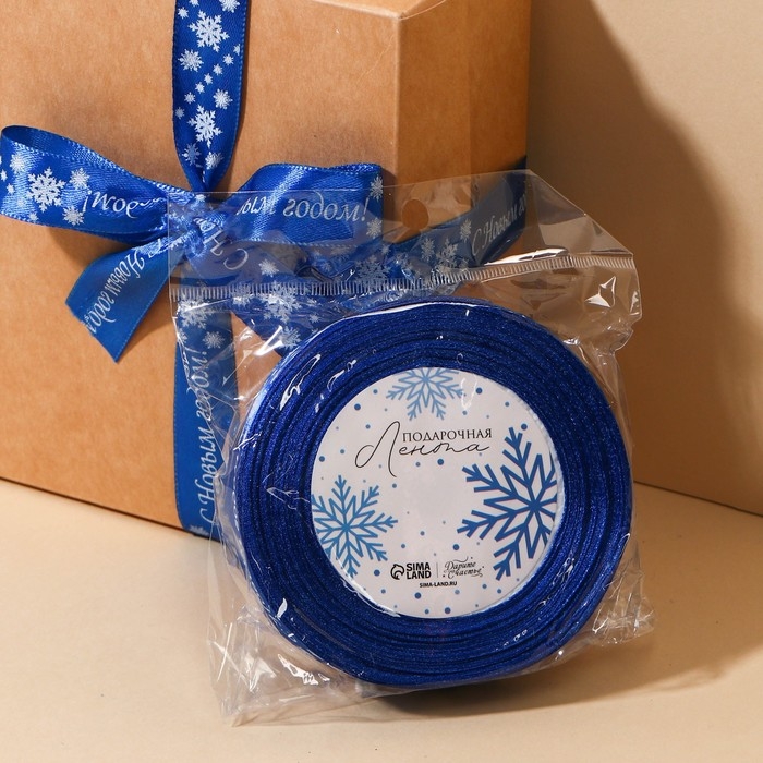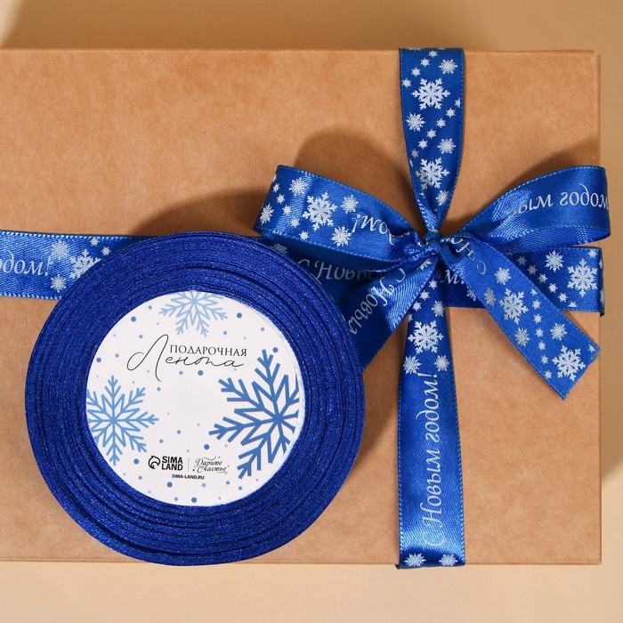 Лента атласная «С Новым годом!», синяя, 2 см × 25 ярдов (22,5 м)