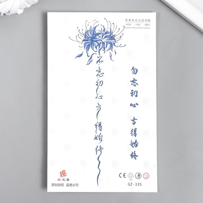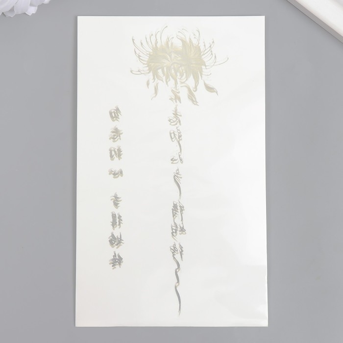 Татуировка на тело синяя "Цветок и иероглифы" 18х11 см