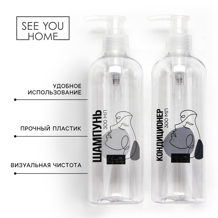 Дозатор для шампуня и кондиционера I love my body, 300 мл, набор 2 шт.