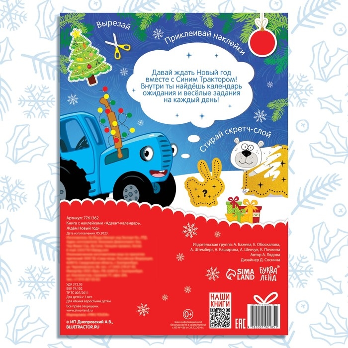 Книга с наклейками «Адвент-календарь. Ждём Новый год», А4, 24 стр., Синий трактор