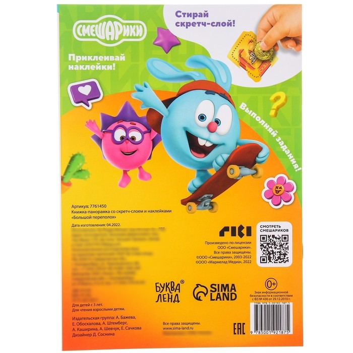 Книжка-раскладушка со скретч-слоем и наклейками «Большой переполох», Смешарики