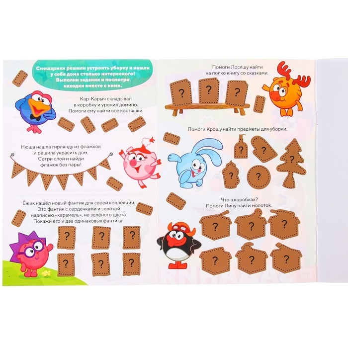 В книжке-панорамке представлено множество различных заданий, которые будут интересны самым маленьким читателям. Для удобства можно отделить лист с наклейками от книжки, а затем приступить к выполнению заданий.