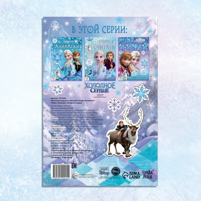 Набор: Книга-раскладушка + многоразовые наклейки + маркер «Холодное сердце. Буквы», 17 × 24 см, Дисней