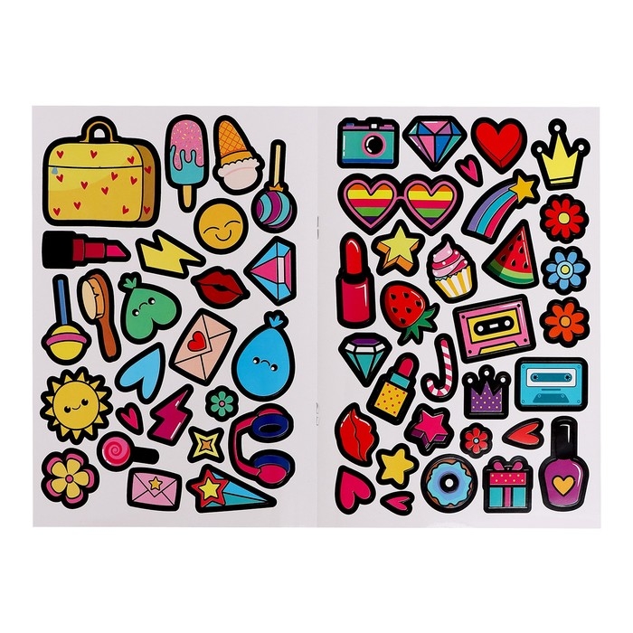 - Внутри ребенок найдёт 6 куколок-основ и 115 стикеров для создания разных образов.